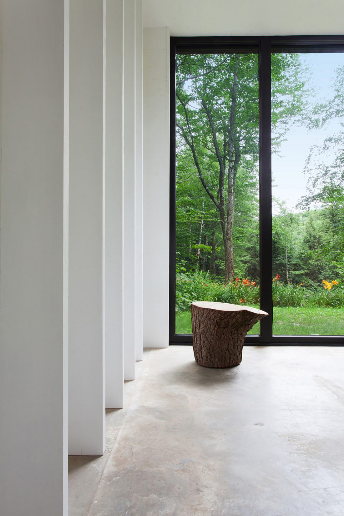 Il volume esterno è coperto di cedro scuro, ricordando la corteccia della grande conifera circostante. L'interno vertiginoso dell'edificio è uno spazio dipinto tutto di bianco. I materiali e la struttura della fase precedente sono mantenuti e ininterrotti in modo che l'aggiunta agisca come un'estensione piuttosto che un inserimento
