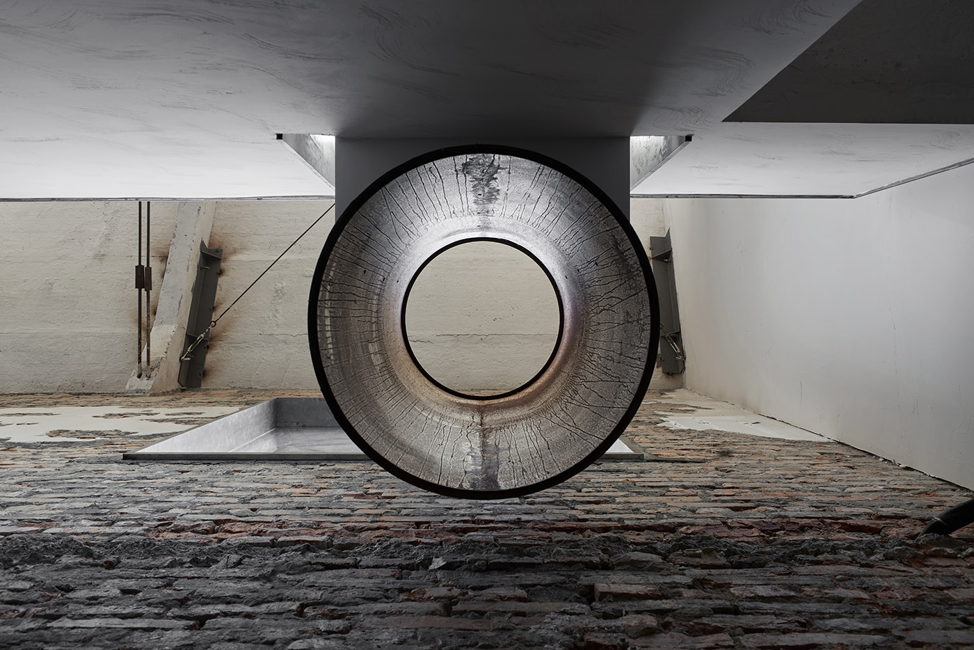 Gli spazi interni ed esterni sono collegati. Simmetrie, piegature di elementi metallici caratterizzano sia l'interno che l'esterno. Le quattro finestre rotonde massimizzano la tensione artistica dello spettatore. Le componenti di linee e superfici si dispiegano metodicamente lungo la logica formale e la struttura interna, portando bellezza ritmica e profondità degli strati