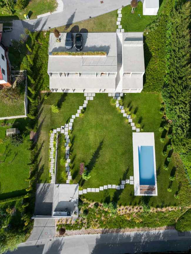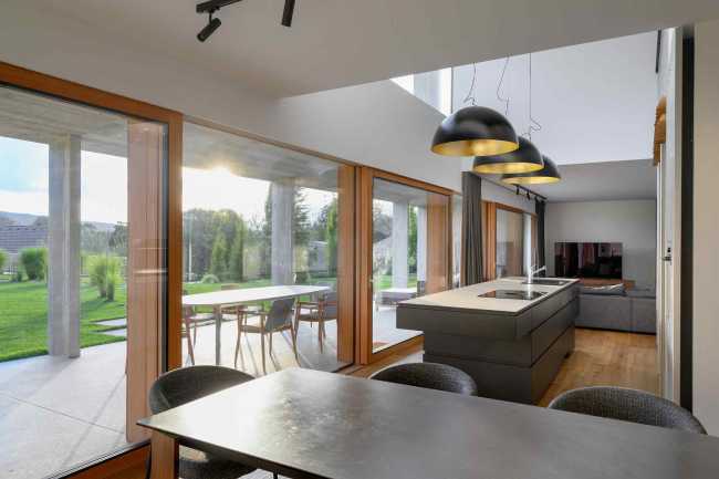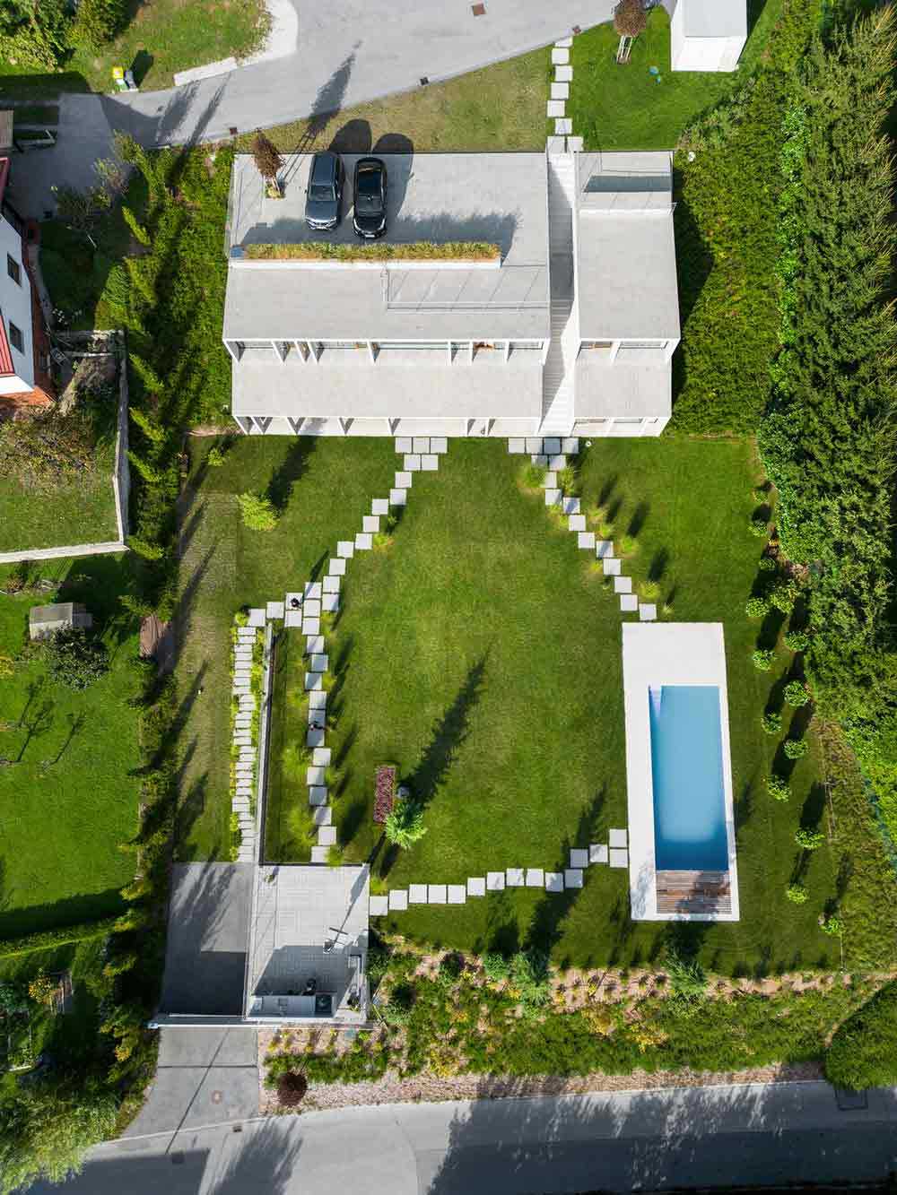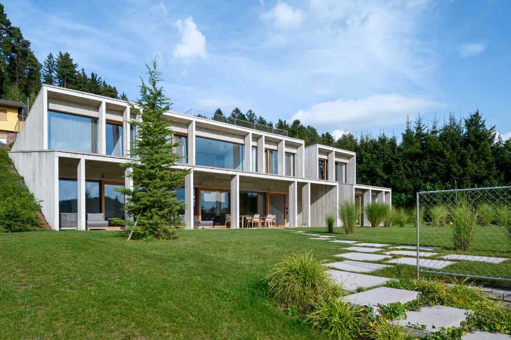 La Stanetova House progetta dallo studio di architettura ENOTA sorge su una collina ai margini settentrionali di Velenje e gode di una vista panoramica sull’intero bacino della città. Il lotto presenta una pendenza dolce verso sud ed è delimitato da due strade, una a nord e una a sud. Il progetto architettonico sfrutta abilmente queste condizioni spaziali, dando forma a un edificio residenziale su due livelli parzialmente interrato, capace di dialogare con il terreno e il contesto naturale circostante.